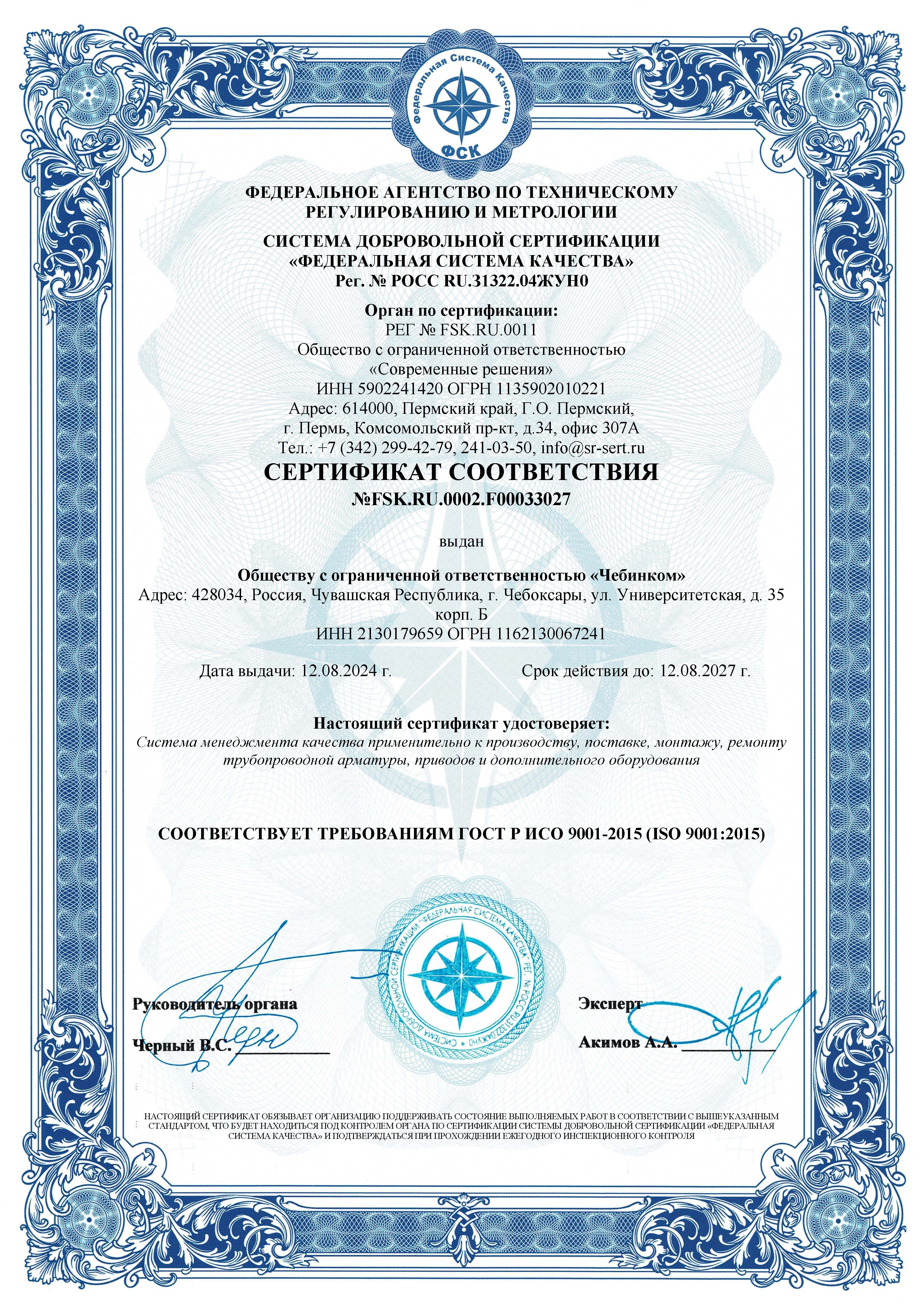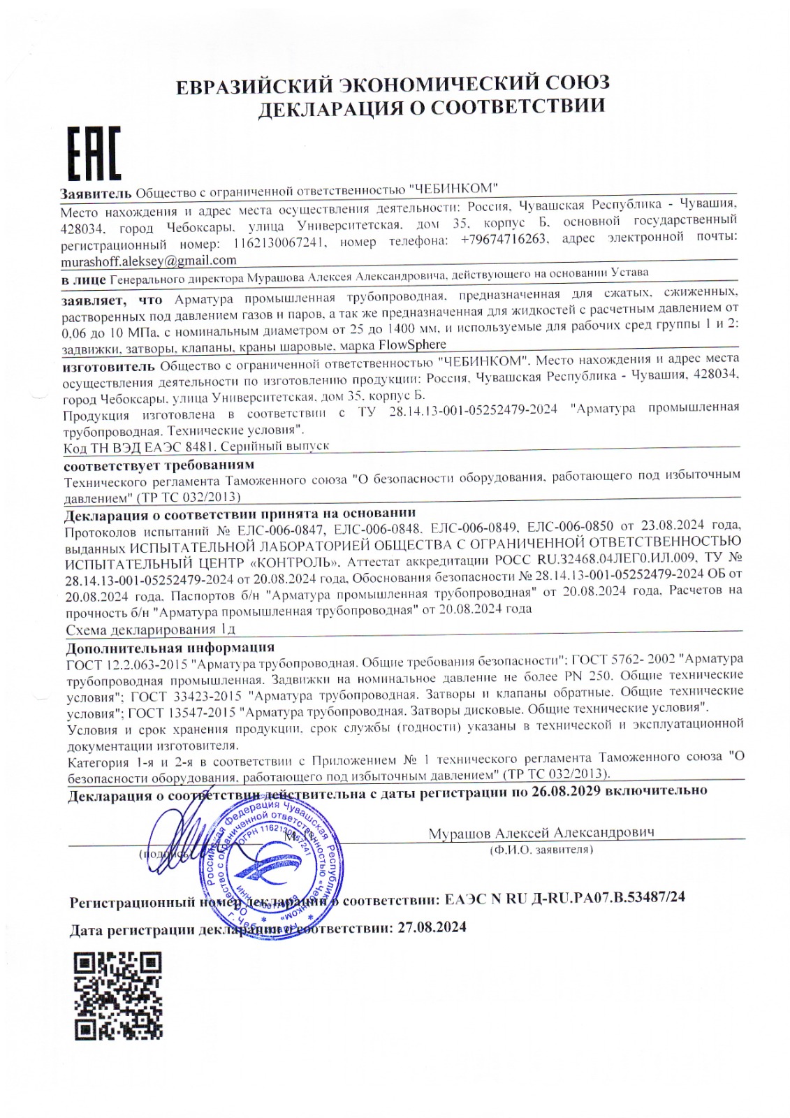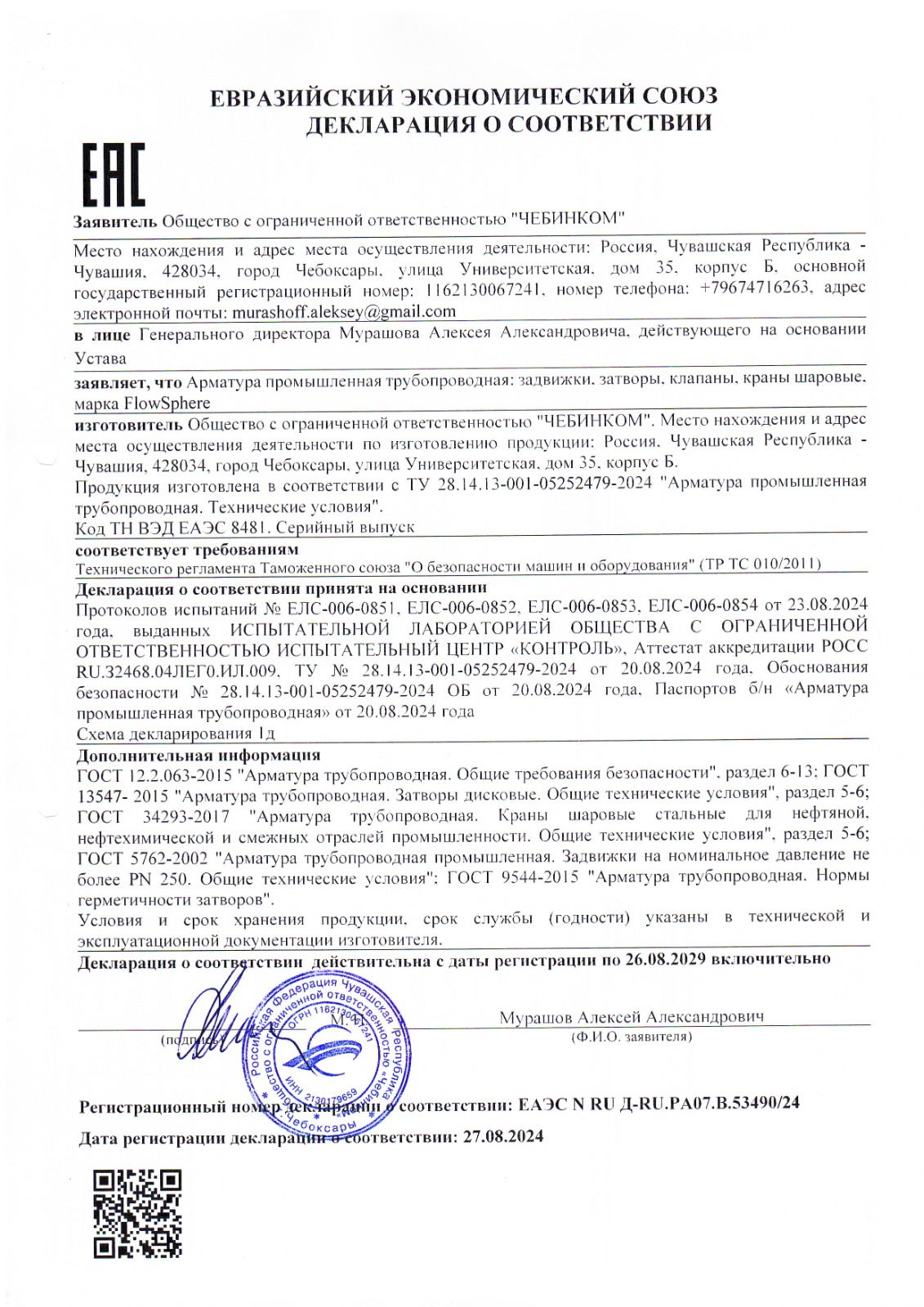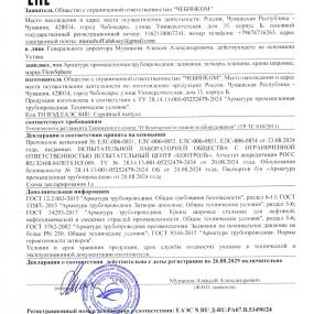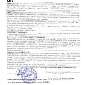 Декларация о соответствии ТР ТС 032/2013 - ЕАЭС № RU Д-RU.PA07.B.53487/24Декларация о соответствии ТР ТС 010/2011 - ЕАЭС № RU Д-RU.PA07.B.53490/24Сертификат ИСО 9001-2015 (ISO 9001:2015) № FSK.RU.0002.F00033027
